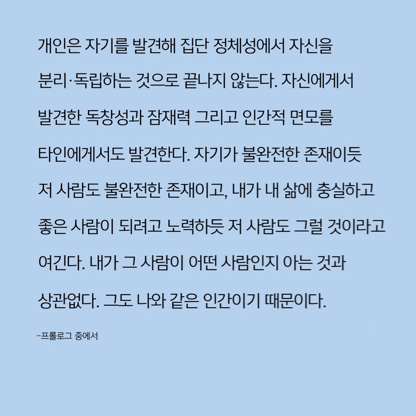 결혼 2년 만에 남편의 암 투병으로 내적 갈등을 겪으며 정신적으로 ‘개인화’되는 분리 과정을 겪었다. 이로 인해 가치관이 크게 바뀌는 경험을 했다. 그 후 온전한 ‘개인’이란 어떻게 가능한가를 묻고 실천하는 데 집중하고 있다. 특히 우리 사회가 고유성과 자율성을 가진 개별자로서 한 인간을 제대로 인식하지 못하는 상황을 자주 접하면서, 이 문제를 정면에서 다루는 책을 내고 싶었다.