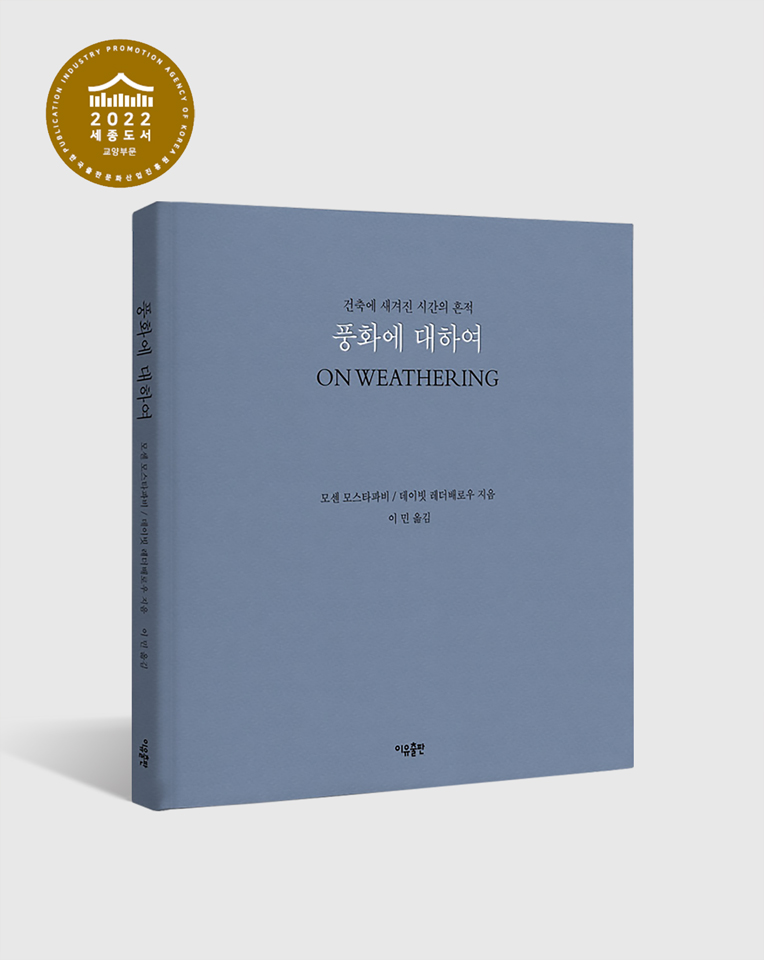<풍화에 대하여>는 풍화라는 자연 현상을 건축과 관련하여 논하되 이를 폭넓은 주제로 확장해서 우리의 시야를 열어주는 책이다. 이 책에서 두 저자는 풍화가 건축에 미치는 영향을 살피면서 시간성, 즉 건물의 생애주기를 폭넓게 바라볼 것을 권한다. 건물은 마감 공사로 완성되지만, 풍화는 마감 작업을 새로 시작한다는 것이다. 아울러 풍화 현상을 건축에 활용한 역사적 사례를 검토하면서 모더니즘 건축이 간과했거나 잃어버린 것이 무엇인지도 면밀히 짚는다. 출간 당시 뉴욕 타임스에 서평이 실렸고 미국건축가협회의 건축이론상을 수상하는 등 호평을 받았다.